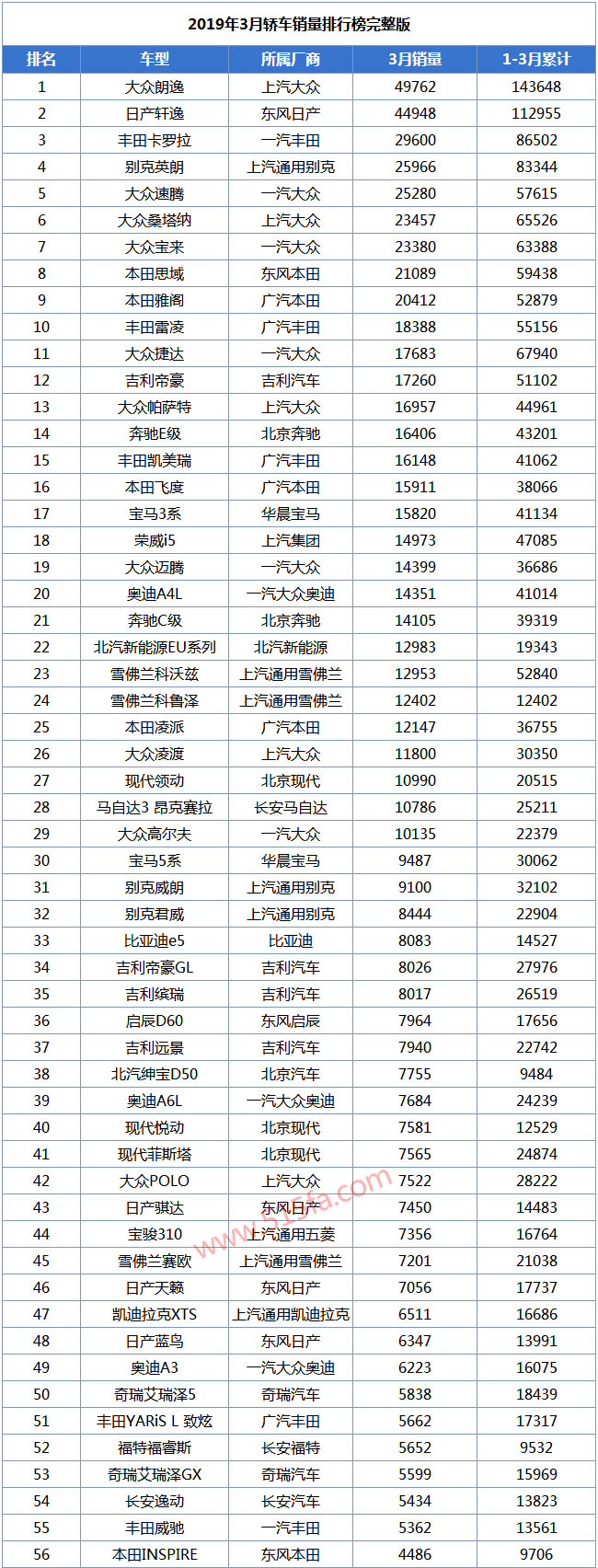 2019年3月轿车销量排行榜完整版出炉了,大众朗逸和日产轩逸销量双双破4万辆,成为轿车市场的绝代双骄。本田思域和本田雅阁3月销量均突破2万辆,双双杀入前十名,成为本田在中国市场最炙手可热的两款轿车。具体排名如下: